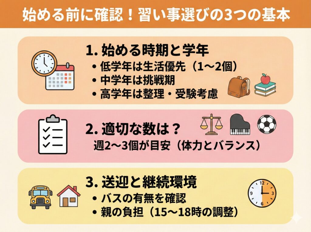 小学生の習い事を始める前に、まずは基本的な知識を整理しておきましょう。適切な時期や数、そして実際に直面する課題について理解しておくことで、より良い選択ができるはずです。