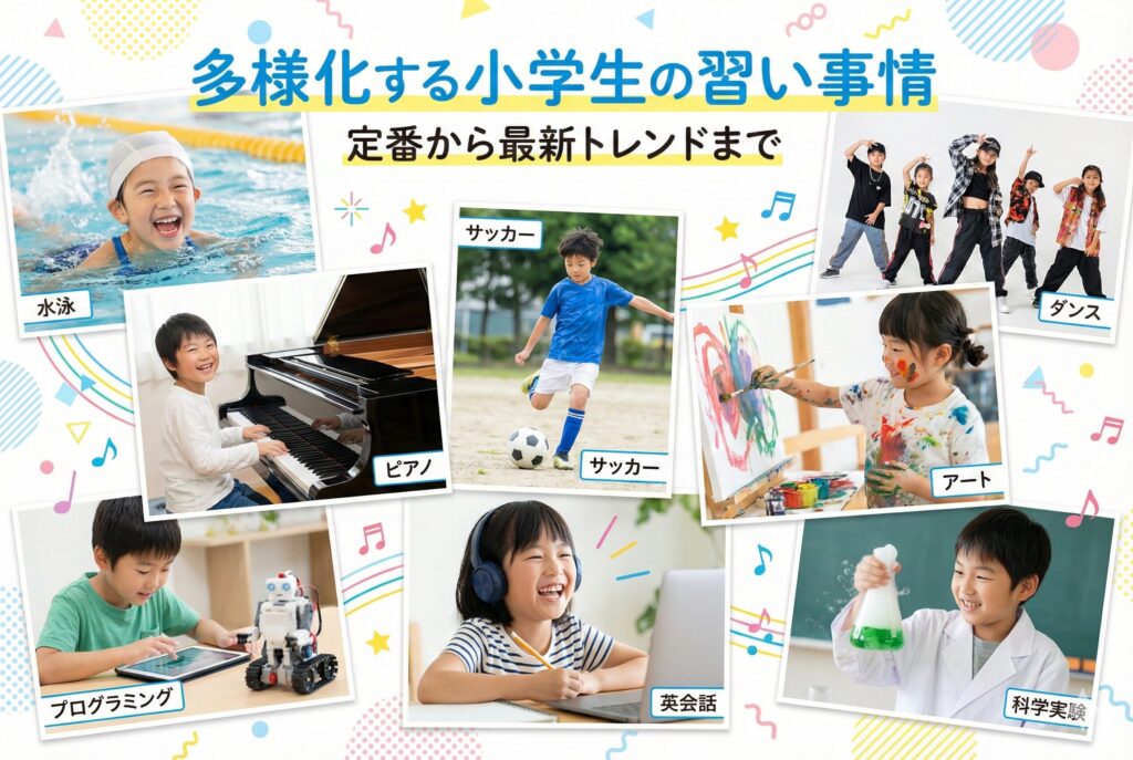 この記事では、最新の小学生の習い事事情から、子どもの個性を活かした習い事選びのポイント、実際に始める前に知っておきたい注意点まで、子育て中のママの視点でわかりやすく解説します。お子さんにぴったりの習い事を見つけるヒントが見つかるはずです。